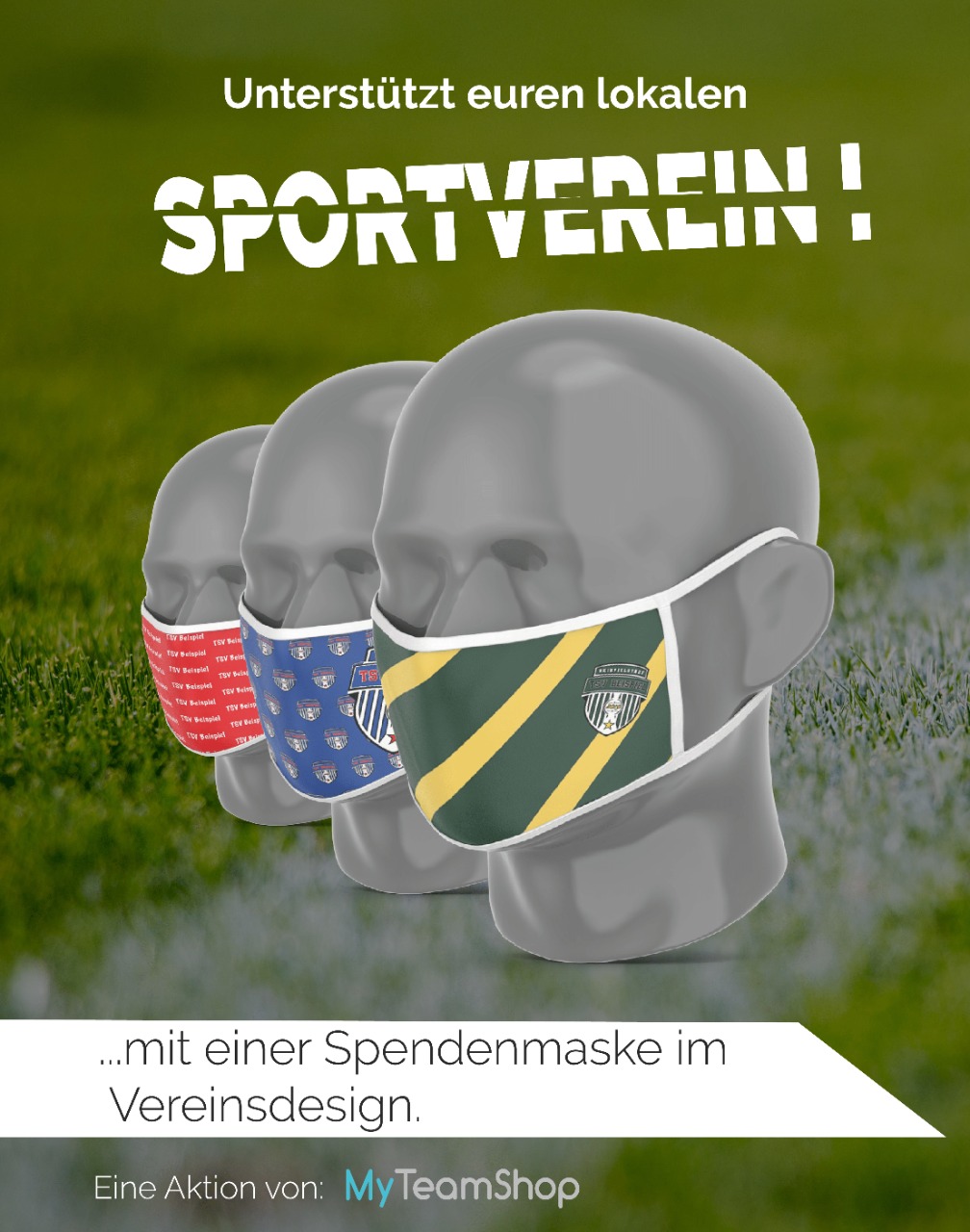 Mit einer Vereinsmaske können sich eure Mitglieder und Fans ausstatten! Wir liefern ab Stückzahl 1 nach Hause!